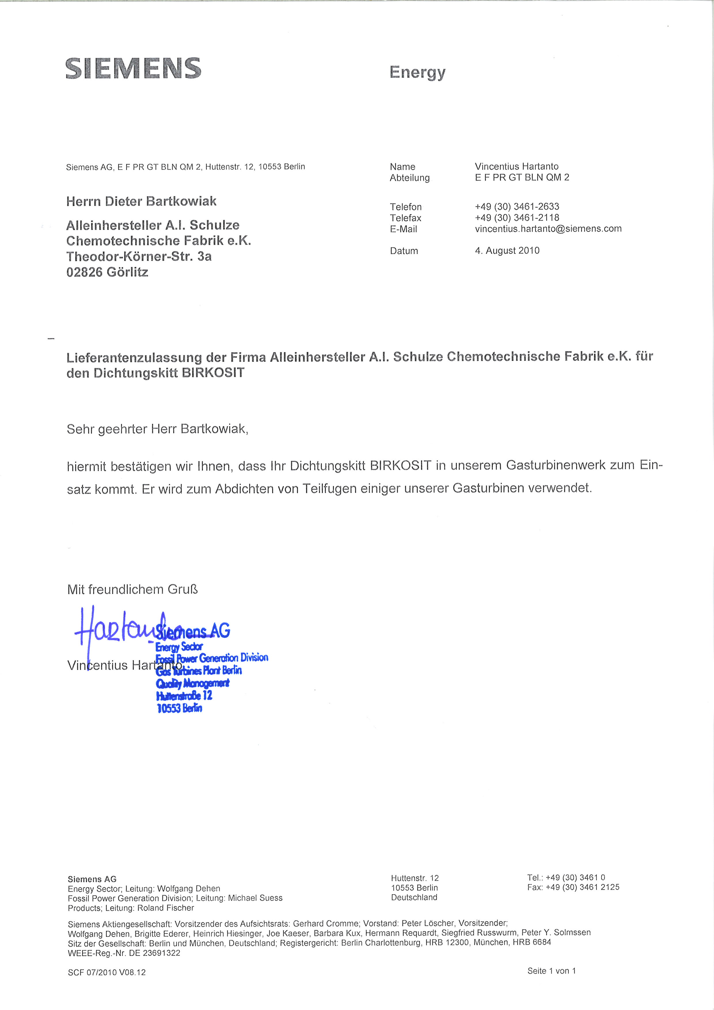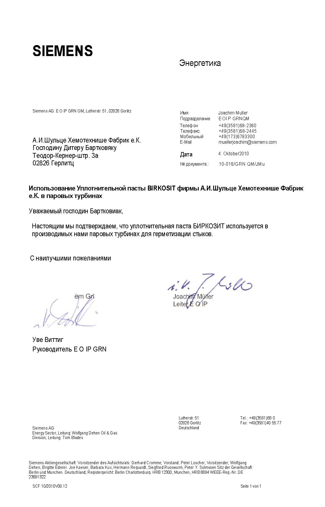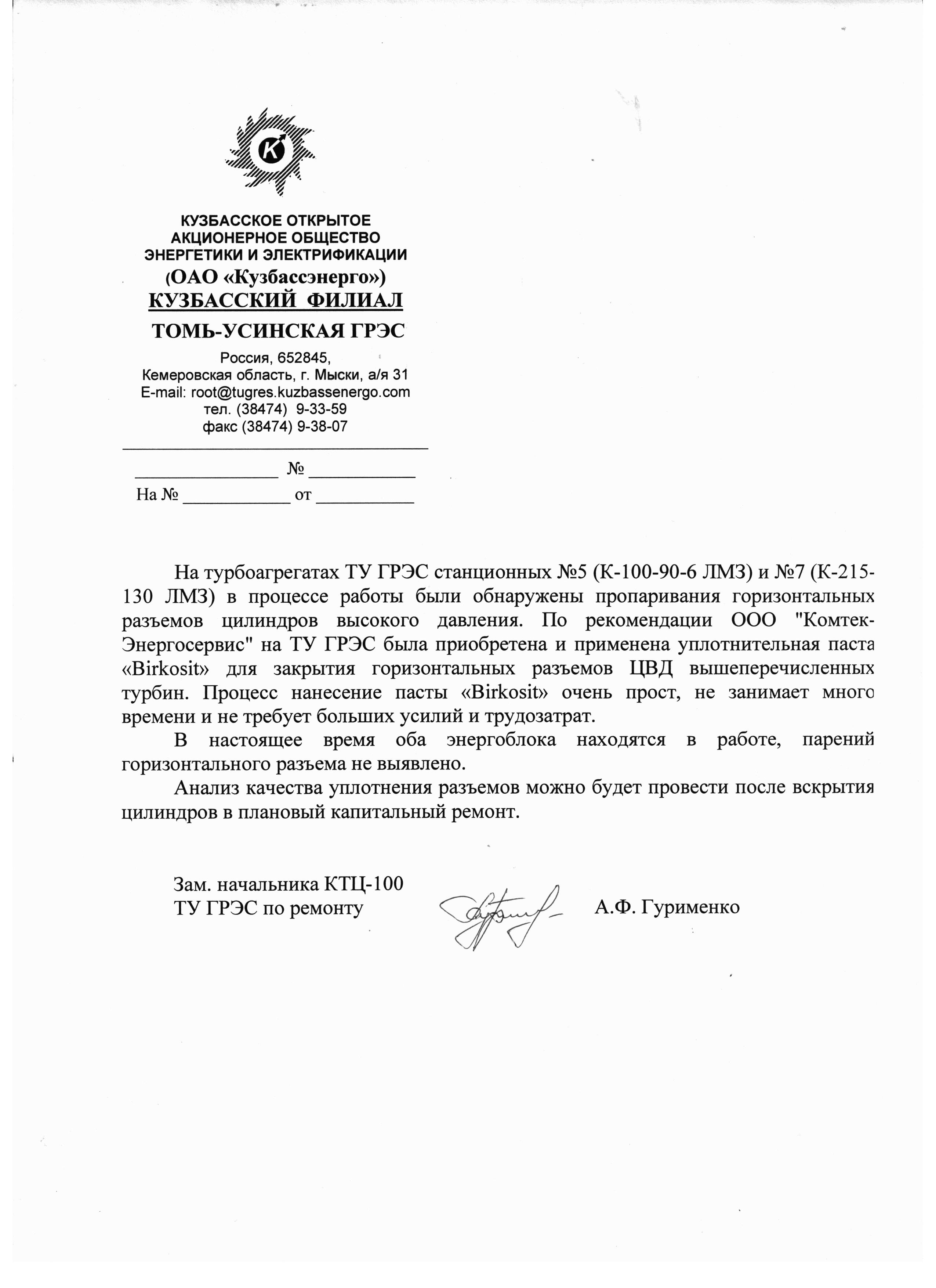 Однокомпонентная уплотнительная паста BIRKOSIT (Биркосит, Биркозит) - мастика предназначена для уплотнения стыков корпуса в паровых и газовых турбинах, работающих при температурах до 900°C и давлении до 250 бар.